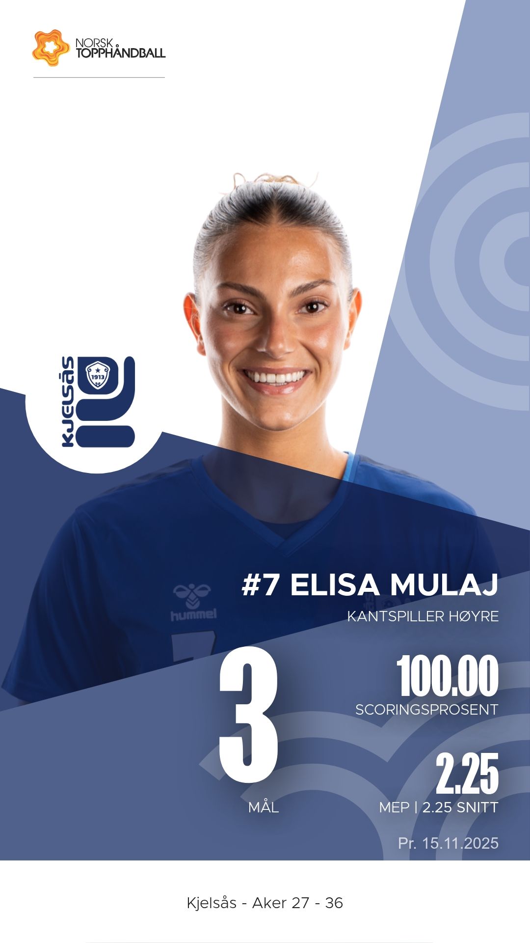 Kjelsås tok imot serieleder Aker Topphåndball til kamp i 1. divisjon kvinner lørdag 15. november 2025 i Kjelsåshallen. Hjemmelaget leverte en innsatsfylt kamp, men måtte til slutt se seg slått 27–36 etter at Aker viste hvorfor de topper tabellen.