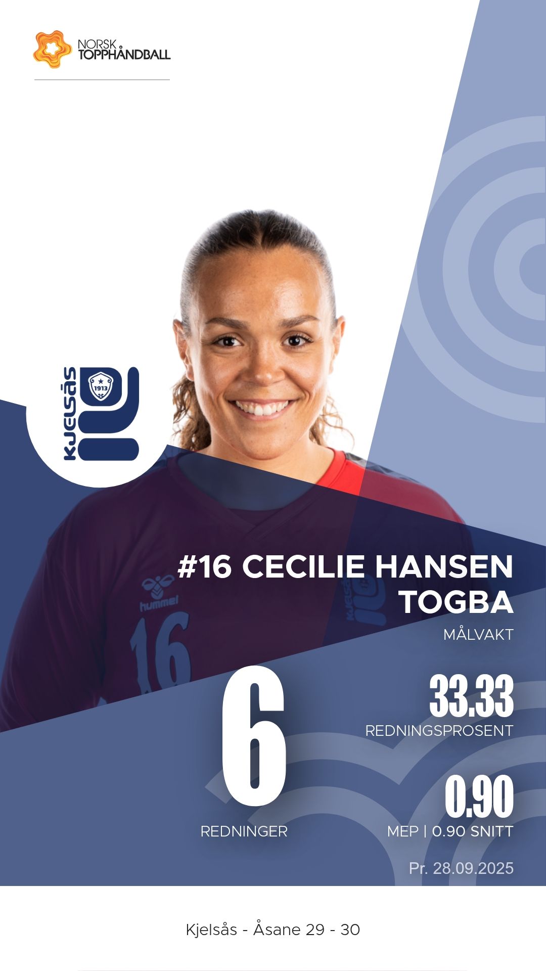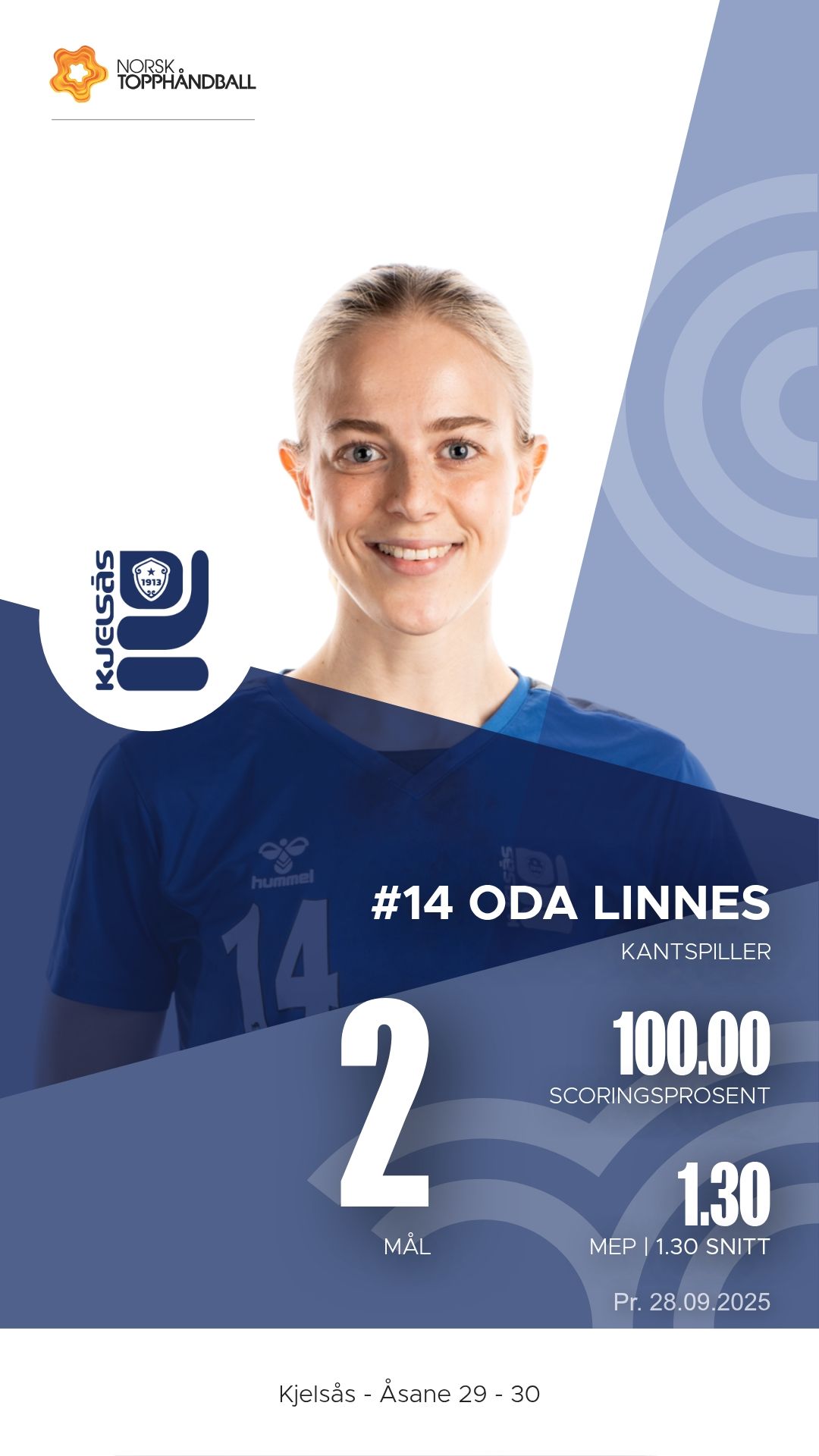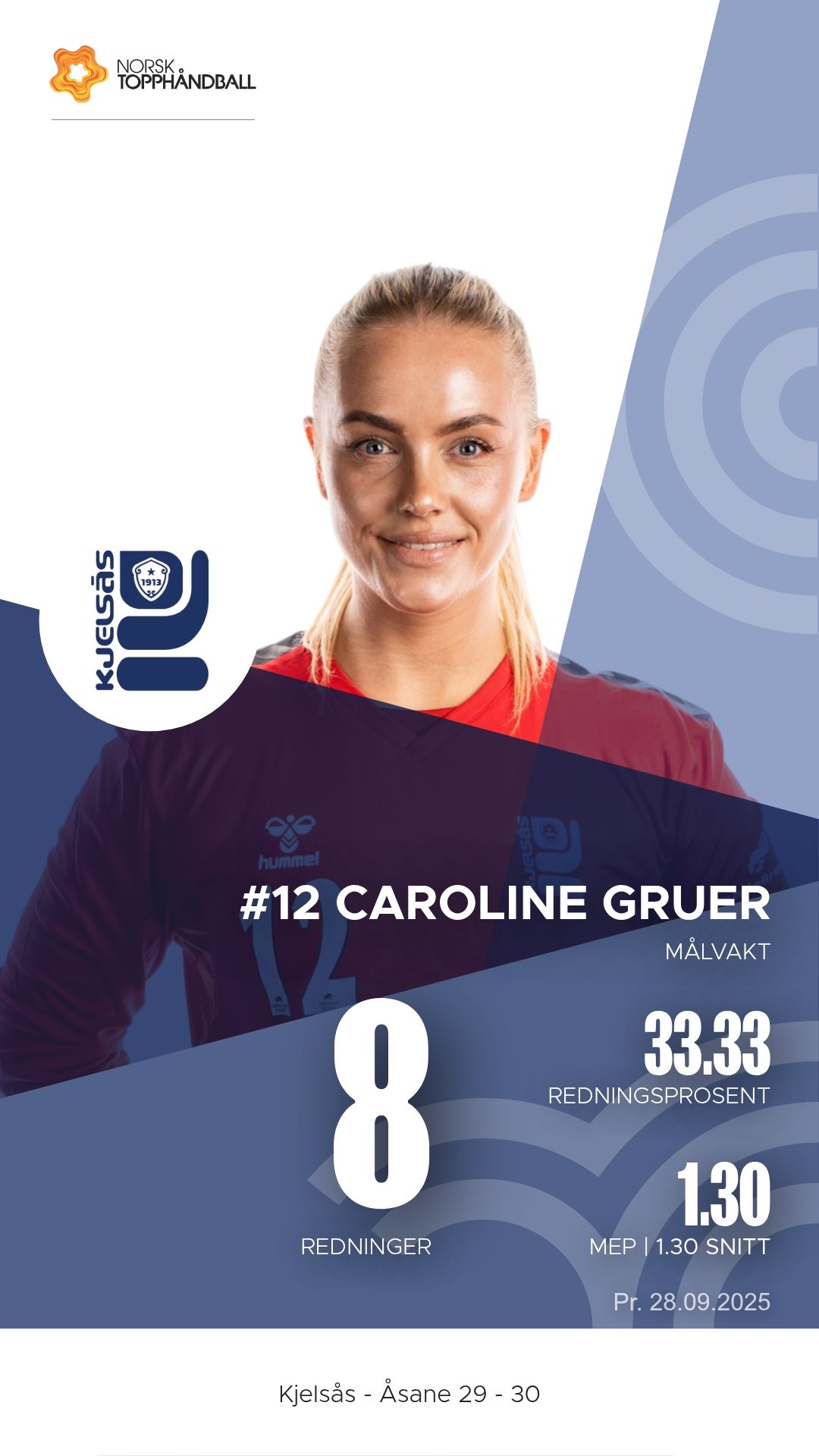 Mia Viljugrein var hjemmelagets mest effektive spiller med syv mål og hele syv målgivende pasninger fra bakspillerposisjon. Hun var tydelig kampens x-faktor for Kjelsås. Thea Olsen Skårsmoen leverte også en solid kamp med både scoringer og målgivende, mens linjespiller Rebecka Hagen viste styrke inne på strek med fire mål. Målvakt Cecilie Hansen Togba sto for flere viktige redninger i første omgang, mens Caroline Gruer tok ansvar etter pause med åtte redninger totalt.